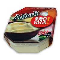 Queso Cheedar, salsa barbacoa, salsa tomate suave y tomate picante